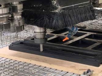 CNC Routers are very similar to CNC Milling Machines. CNC Routers are typically used to accommodate large "Flat" or simple 2D parts that can be cut out from large sheets of plastic. In many cases, parts can be nested in specific orientations to provide the best possible material yield. Many CNC Routers are equipped with vacuum systems which aid in holding sheets in place during machining operation.