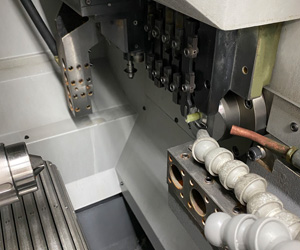 Swiss Machining refers to specialty lathes that are intended to machine small diameter parts to exacting tolerances. One of the key differences in a swiss lathe vs a traditional lathe is the moving headstock that a swiss lathe utilizes. A chucking collet latches onto material in the headstock and subsequently passes into the tooling area through a guide bushing. While swiss lathes use several single-point tools, live tooling is usually involved as well. Tools contact the workpiece close to the guide bushing to ensure maximum dimensional accuracy. Additionally, many swiss lathes are equipped with a sub-spindle which allows for working on the backside of parts. Due to the wide range of capabilities a swiss machine offers, parts rarely require secondary operations.